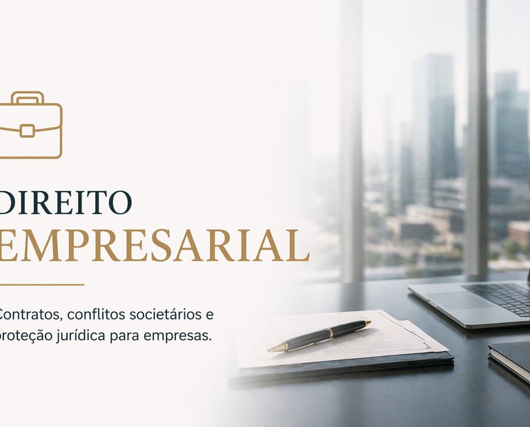 Suporte jurídico para empresas em todas as fases do negócio, com foco em prevenção de riscos, organização societária e resolução de conflitos.
