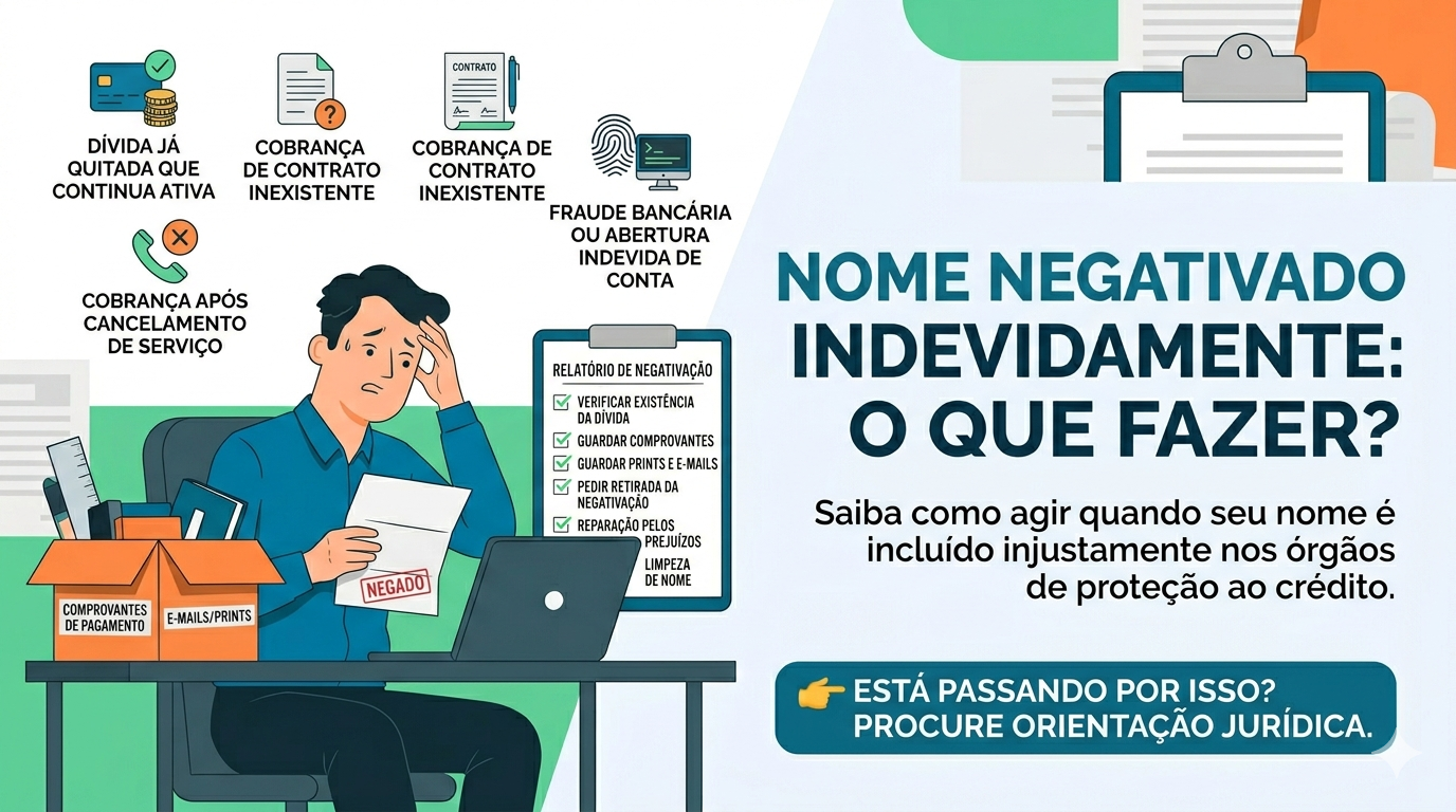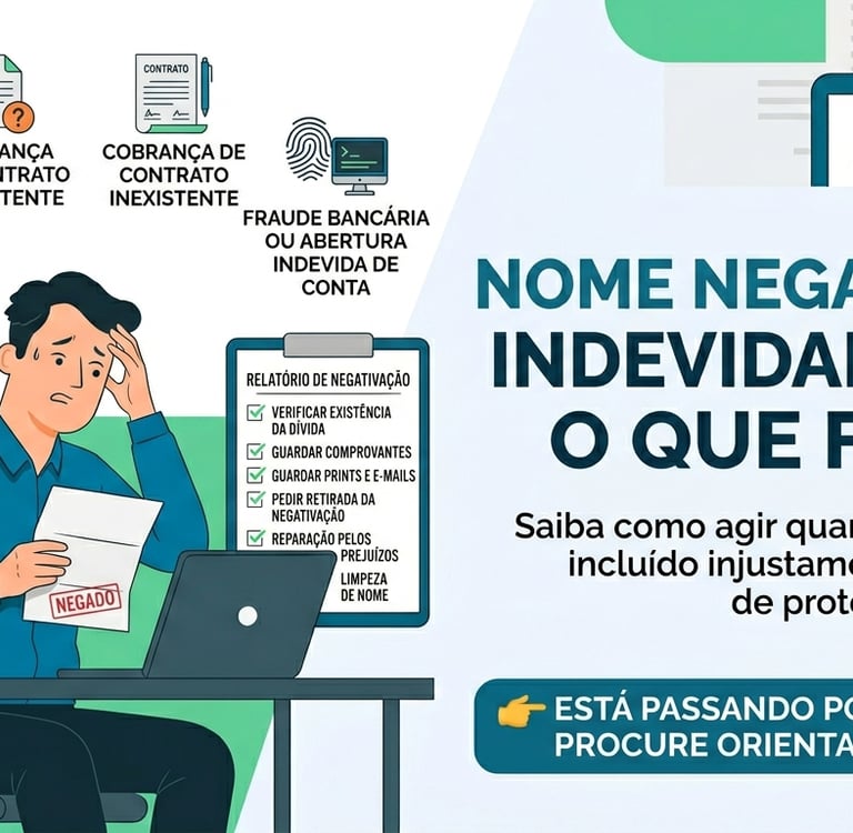 Isso pode acontecer por erro da empresa, dívida já paga, fraude, cobrança de serviço cancelado ou contrato que o consumidor não reconhece.